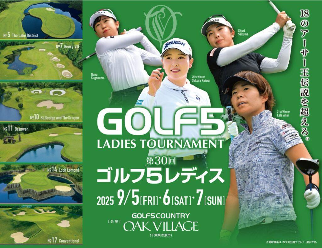 JLPGAツアー第24戦、ゴルフ5レディスプロゴルフトーナメントは、日本女子プロゴルフ協会の公認、ゴルフ用品専門店「ゴルフ5」を運営する株式会社アルペンの主催により、毎年9月第1週にアルペンが運営するゴルフ場で開催されている女子プロゴルフトーナメントです。