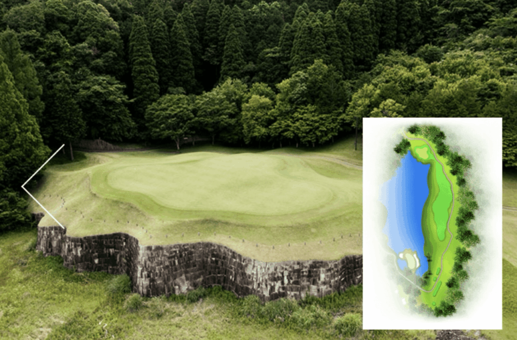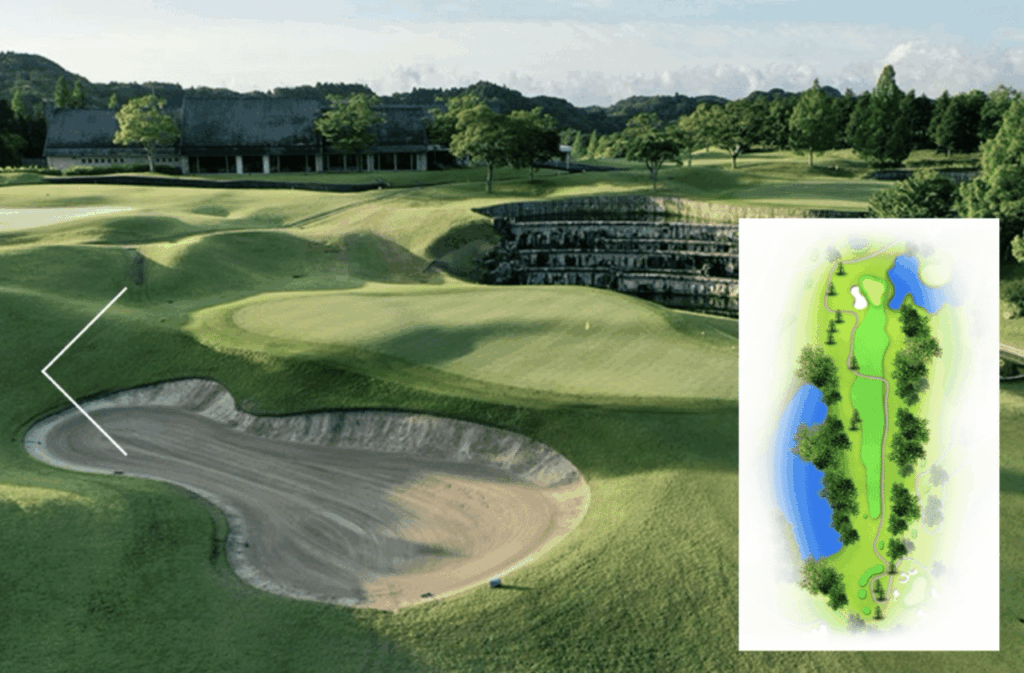 グリーンは深く傾斜のあるガードバンカーで覆われており、グリーンのアンジュレーションも難しい。