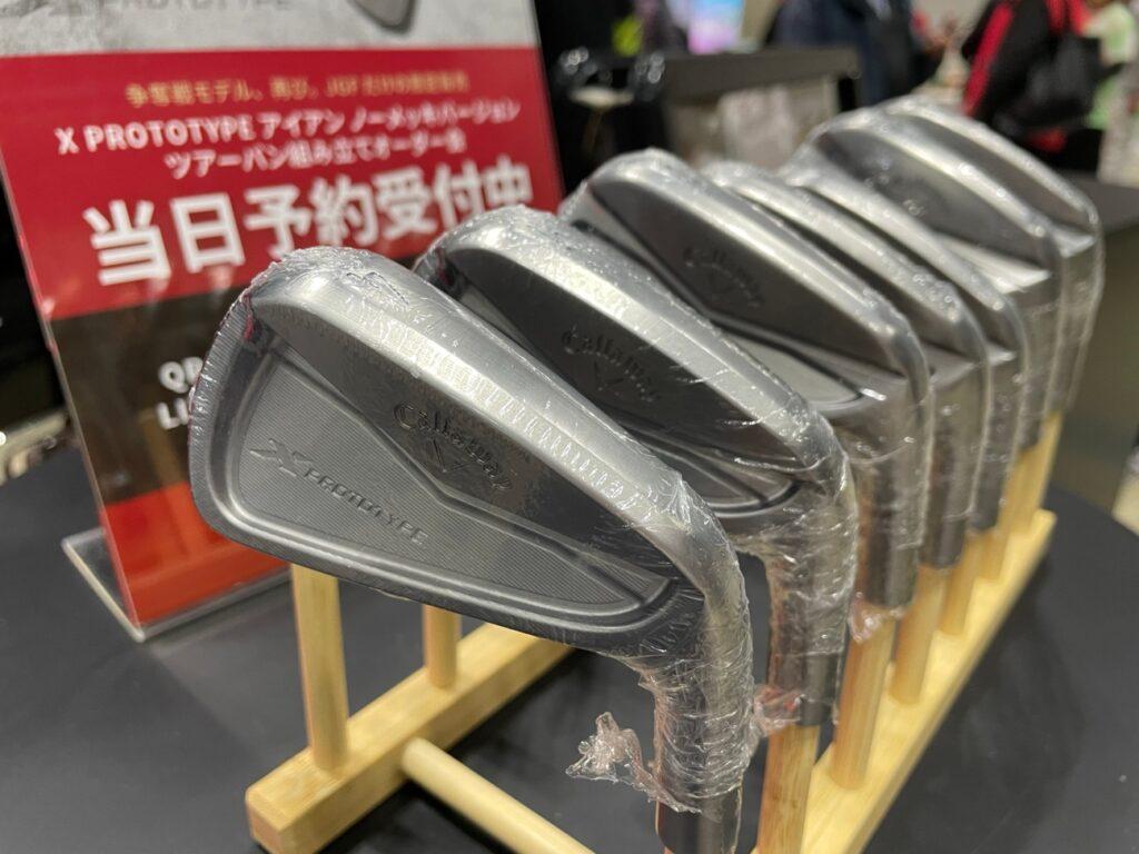 お目当てのCallawayブースへ。新作のQUANTUMがずらり。X PROROTYPEアイアン ノーメッキバージョンのツアーバン組み立てオーダー会や、オリジナルグローブ制作もやっていました。