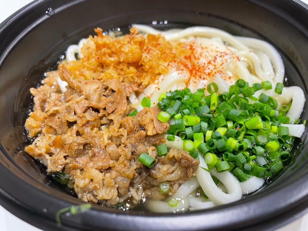 奥にもフードのワゴン販売が並びます。いちごサンド、肉うどん、おにぎり、ポテト、などなど。