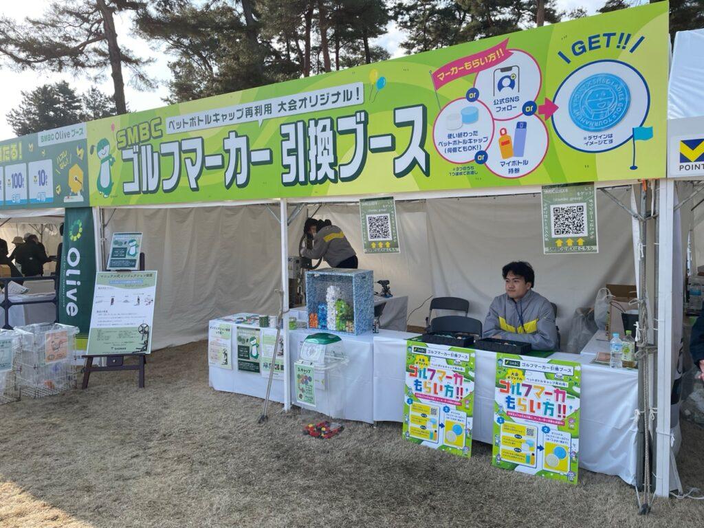 ペットボトルのキャップまたは公式SNSをフォローまたはマイボトル持参で、ペットボトルキャップを再利用した大会オリジナルのゴルフマーカーがもらえます。